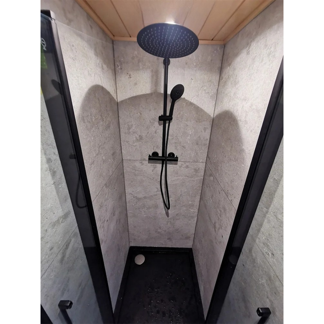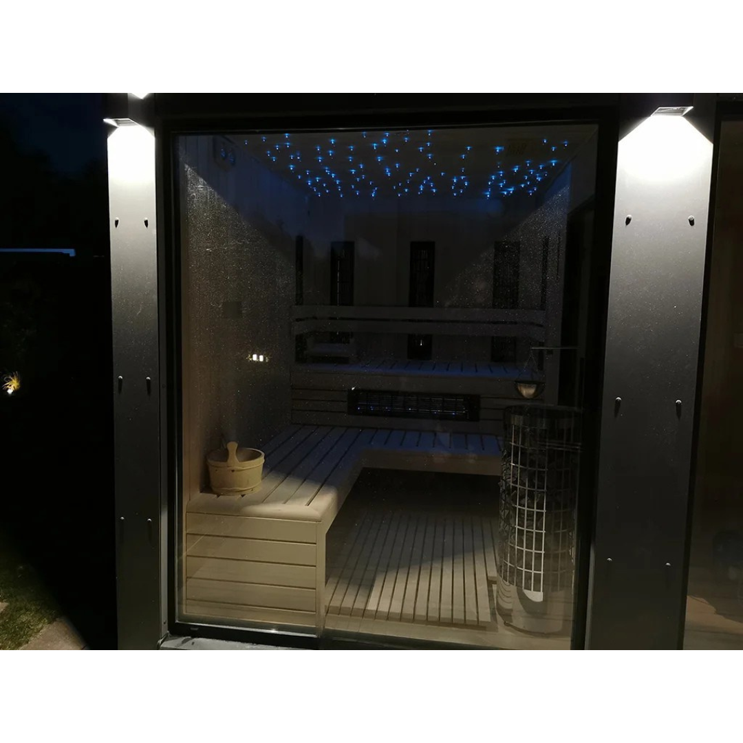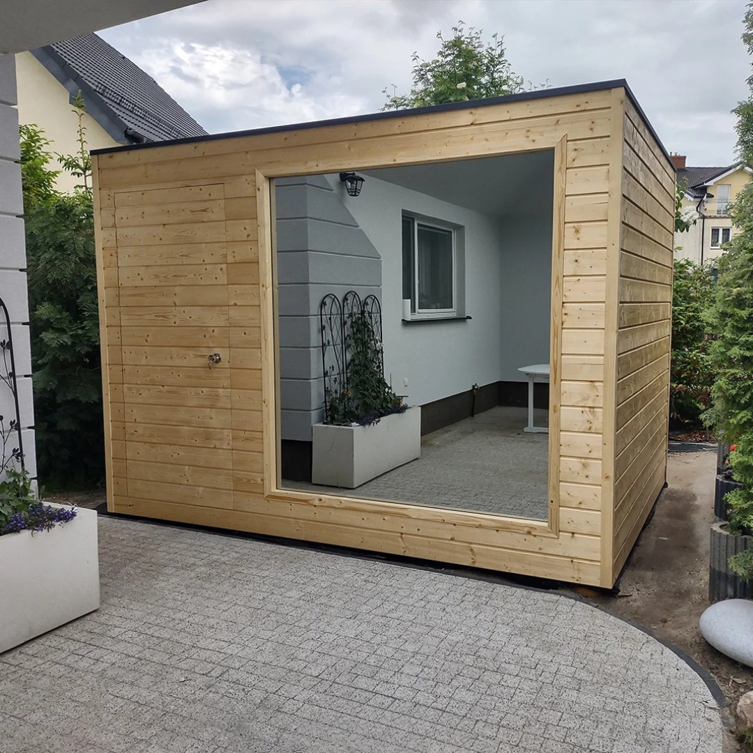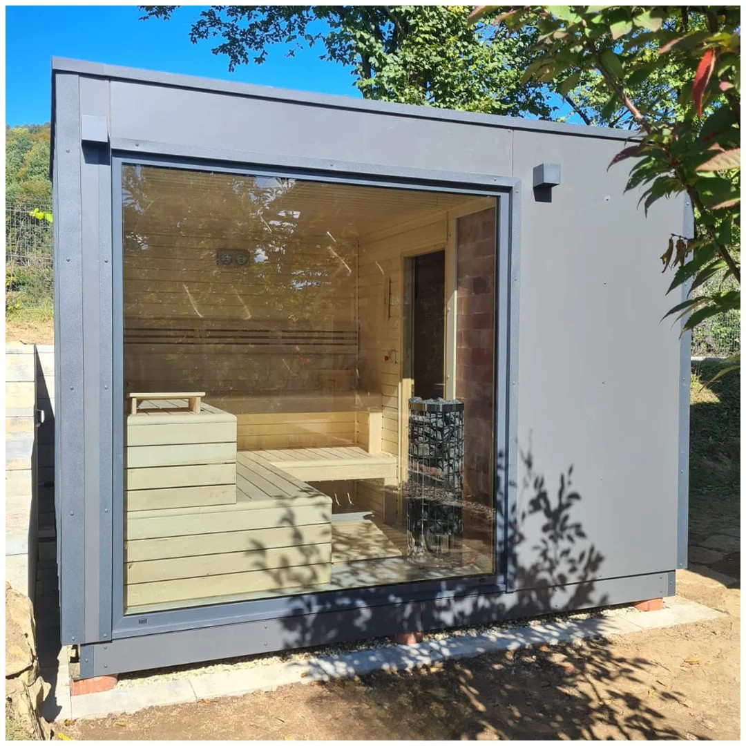Das Angebot für das Gartenhaus HARA umfasst eine vollständig ausgestattete und gedämmte Gartensauna.