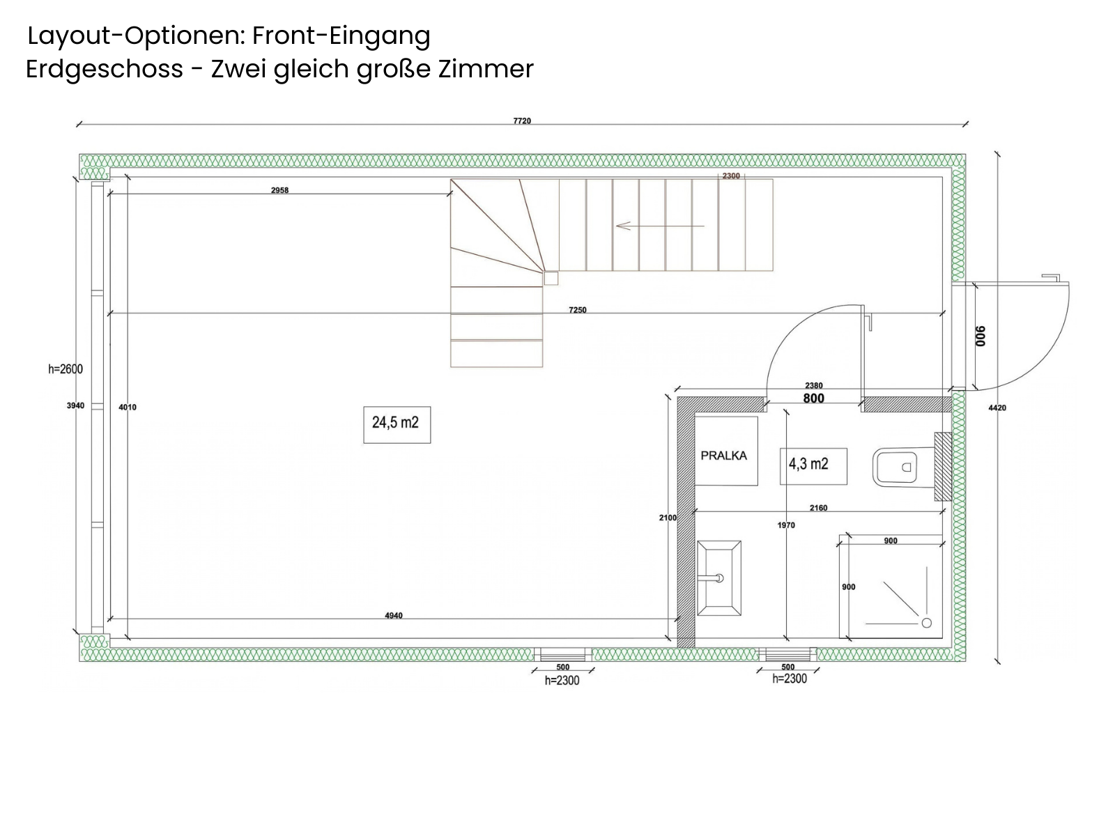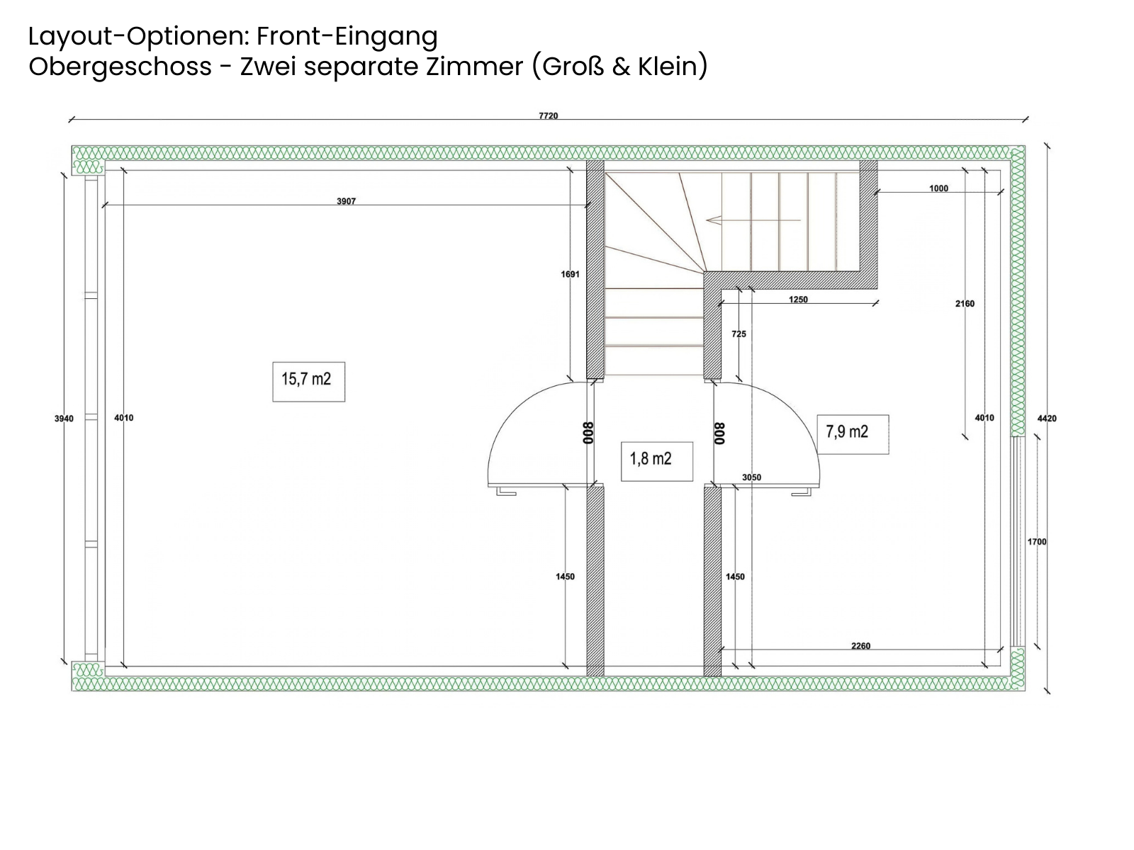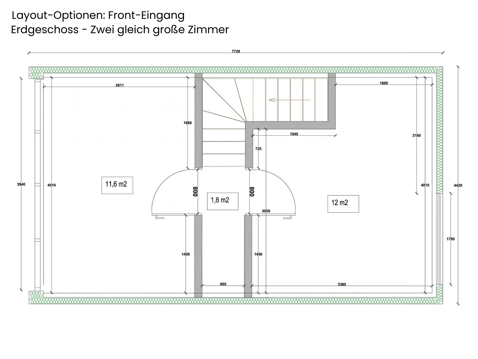 Abmessungen des Hauses: 4,42 m x 7,72 m