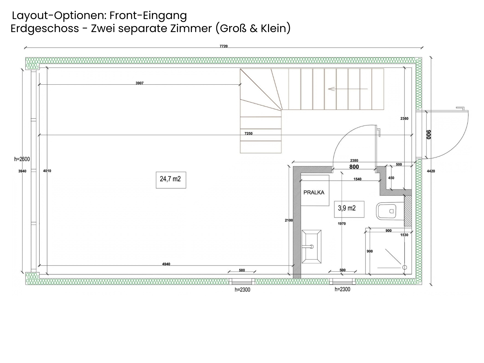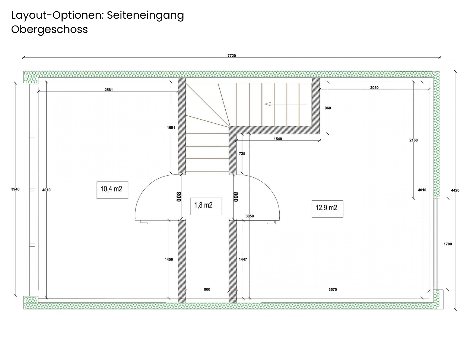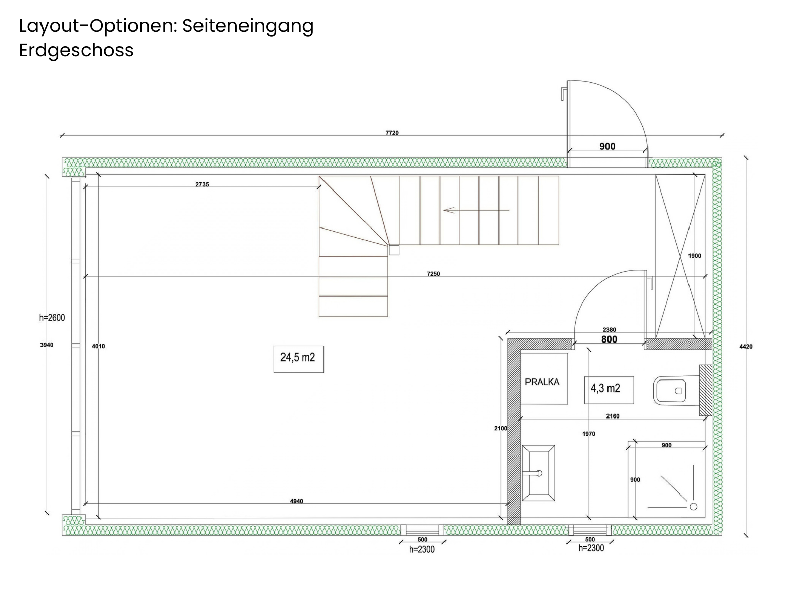 Abmessungen des Hauses: 4,42 m x 7,72 m