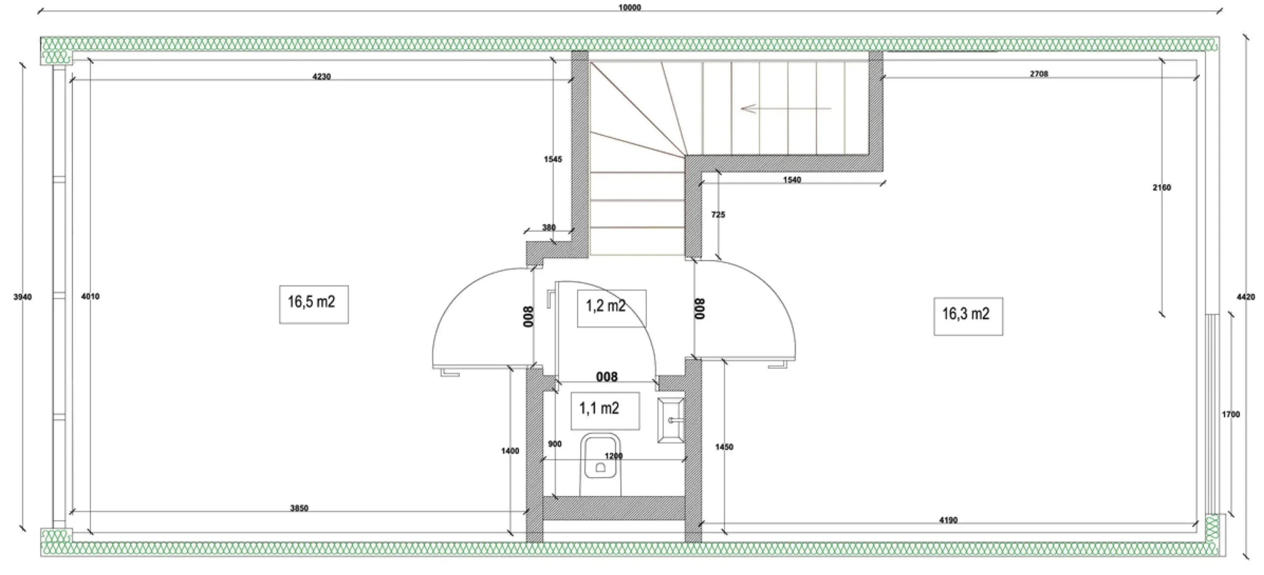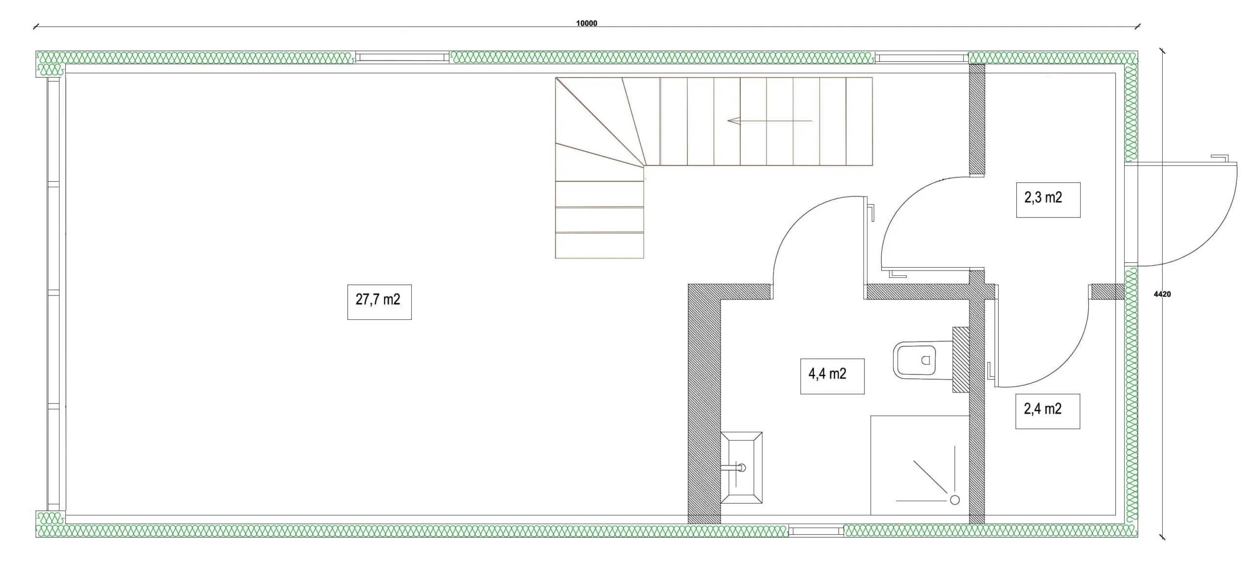 Abmessungen des Hauses: 4,42 m x 10,00 m