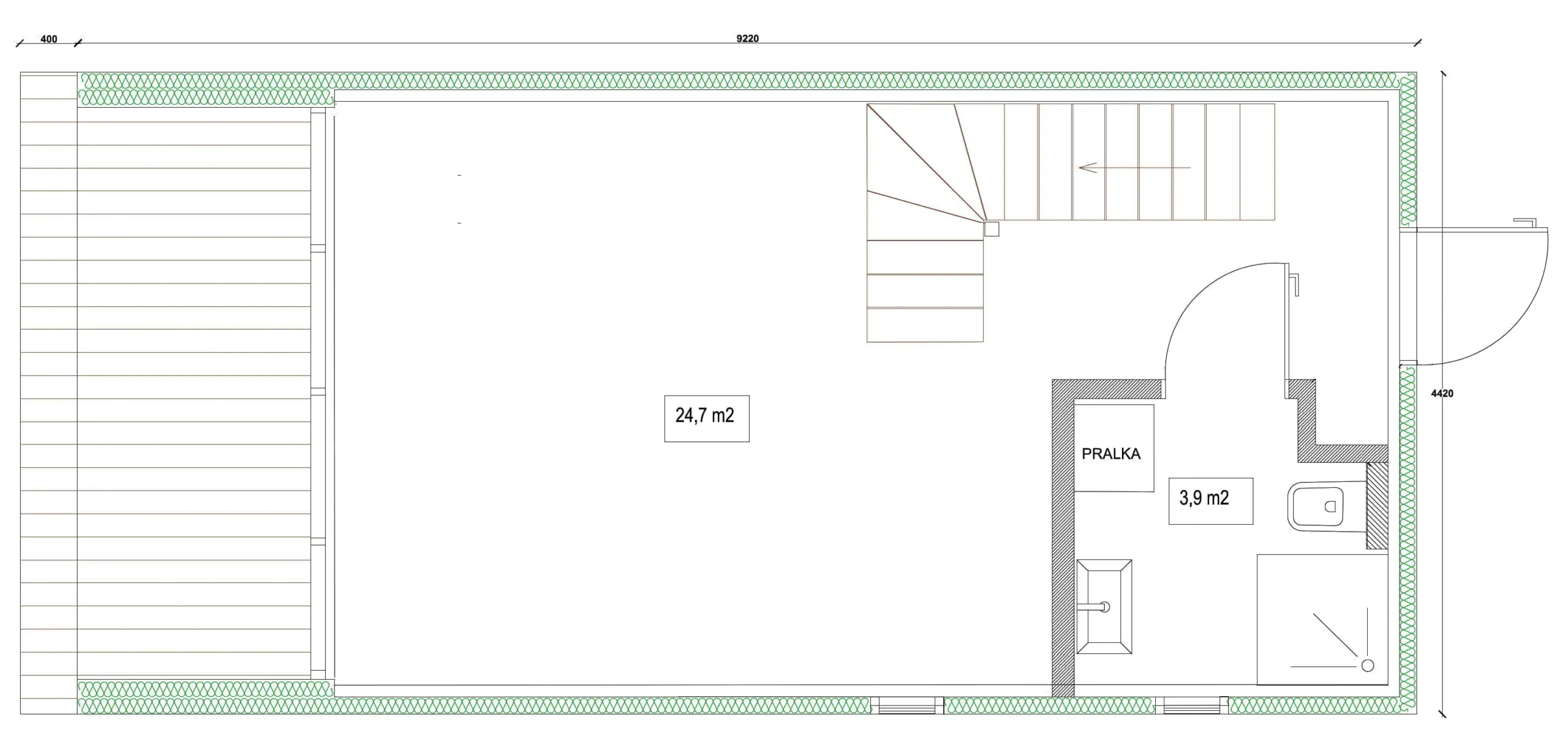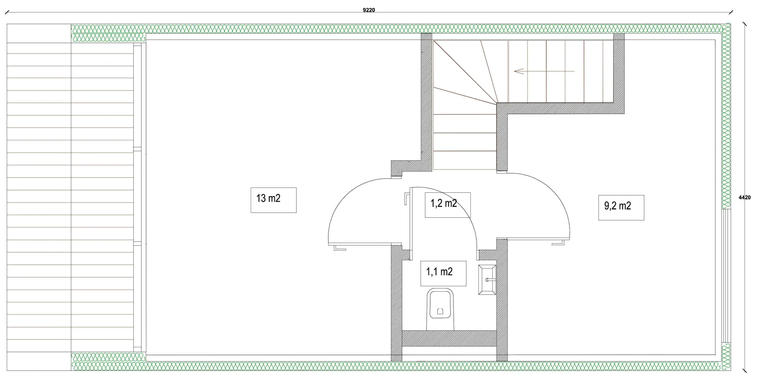 Abmessungen des Hauses: 4,42 m x 9,62 m