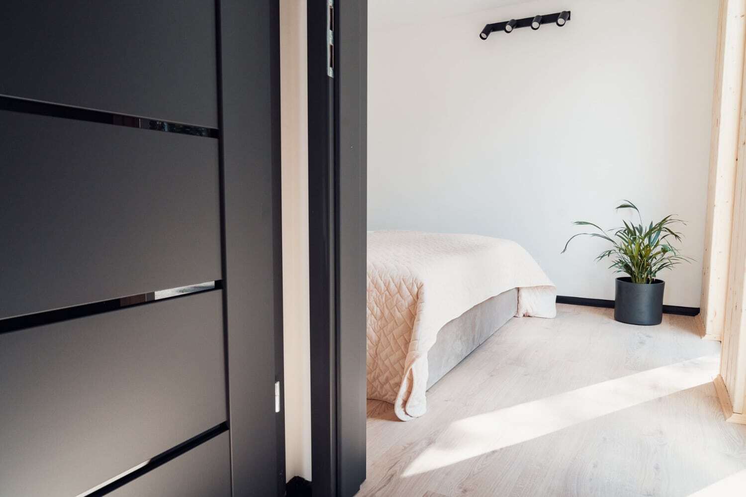 Schlafzimmer 1: Doppelbett mit hochwertigen Matratzen, Nachttische und großzügiger Kleiderschrank.