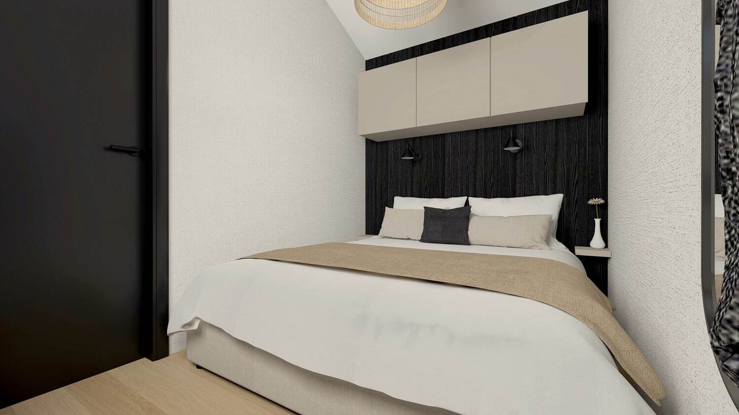 Erholsamer Rückzugsort: Betten mit hochwertigen, austauschbaren Matratzen, Nachttische und geräumige Kleiderschränke.