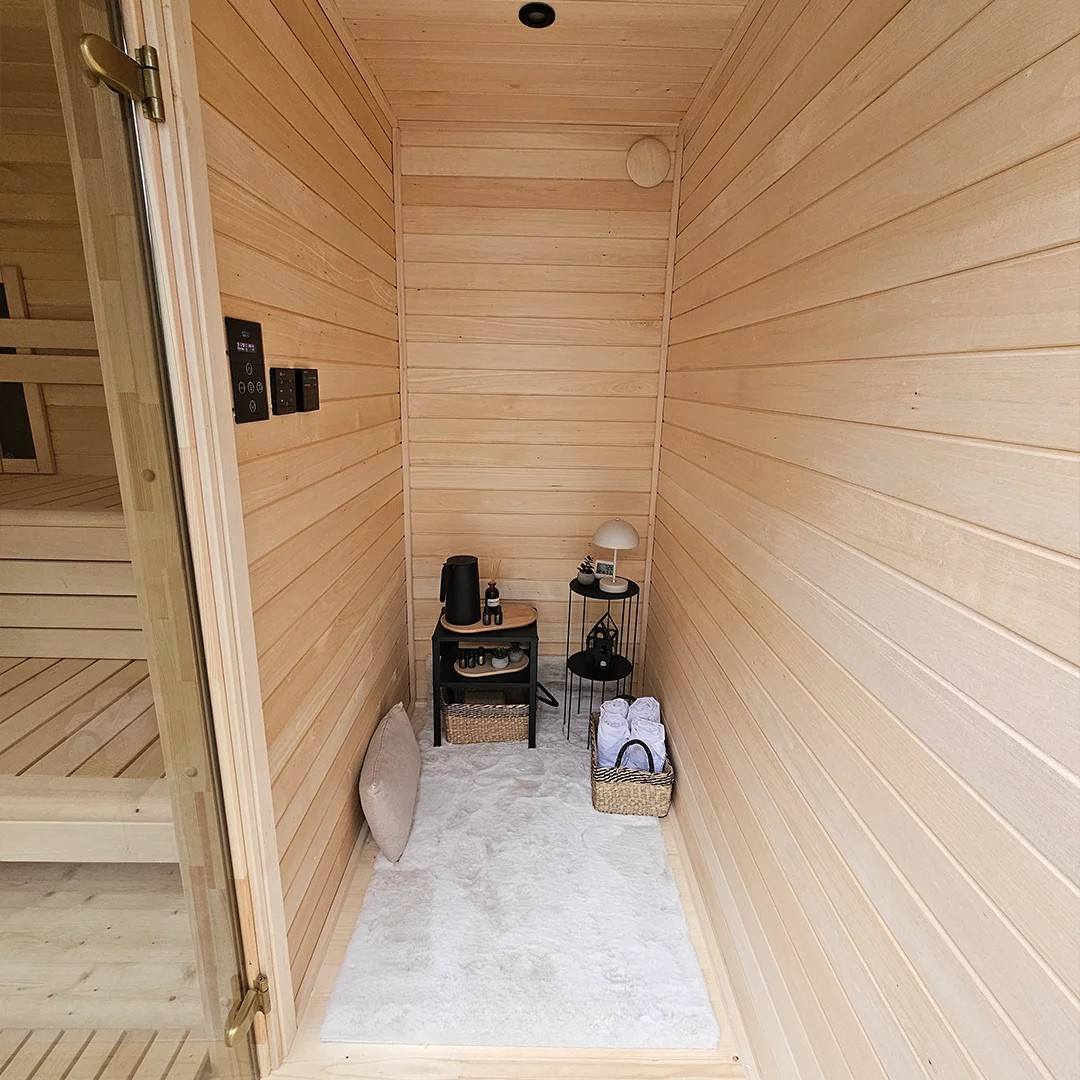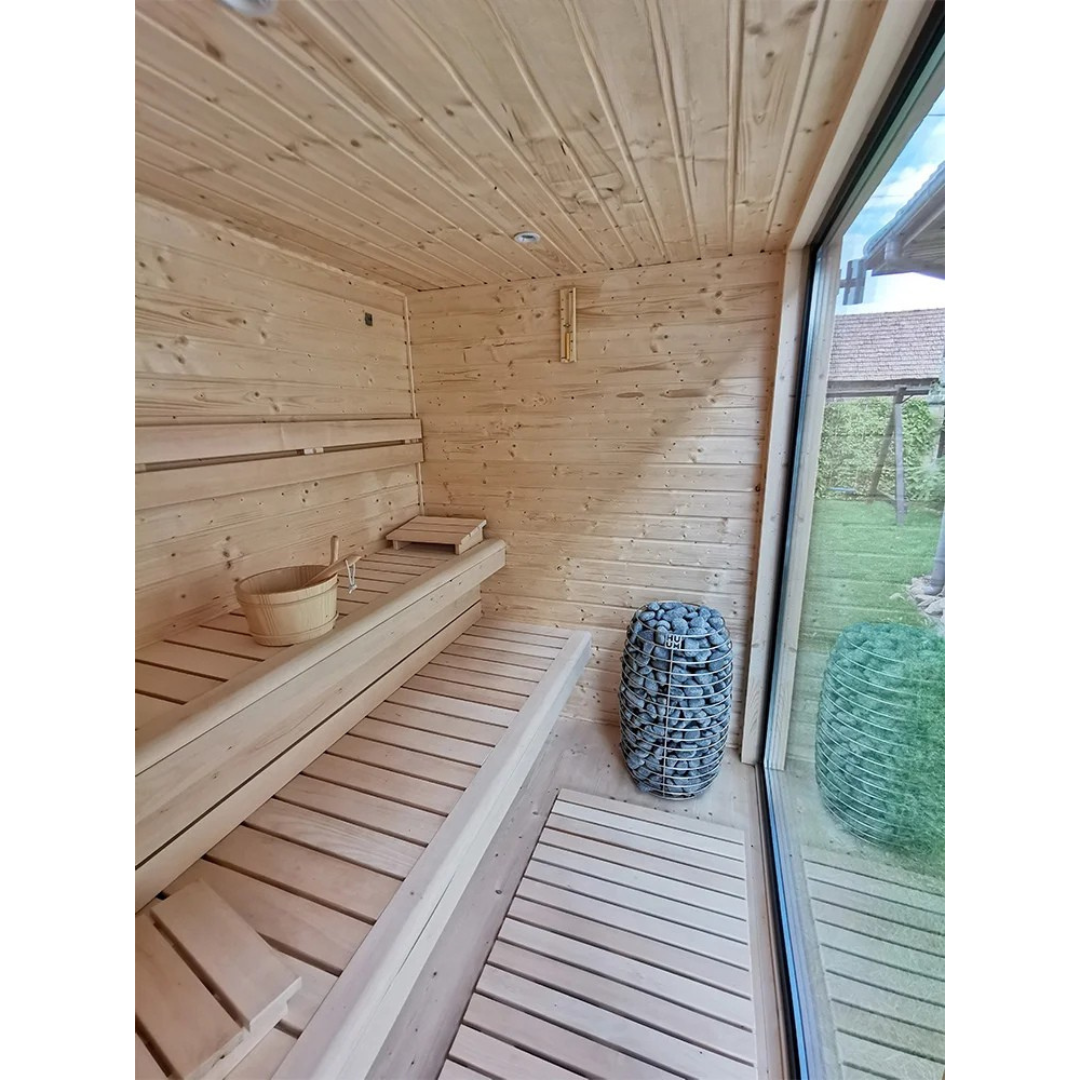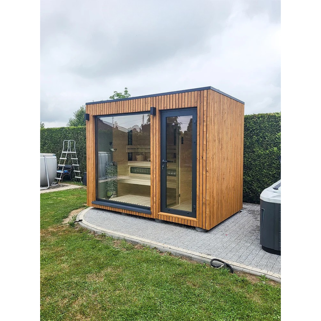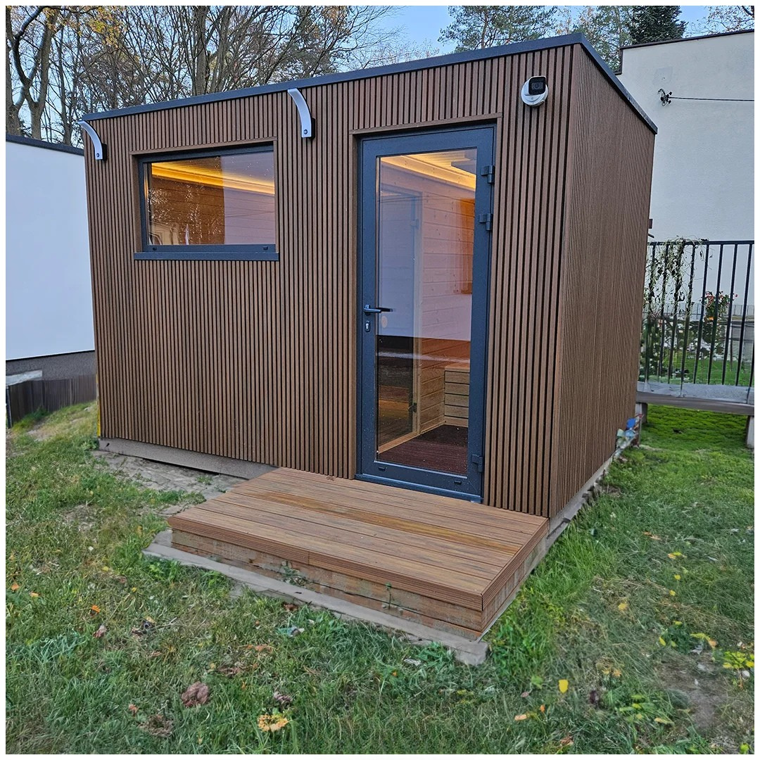 Das Angebot für das Gartenhaus TEJA umfasst eine vollständig ausgestattete und gedämmte Gartensauna.
