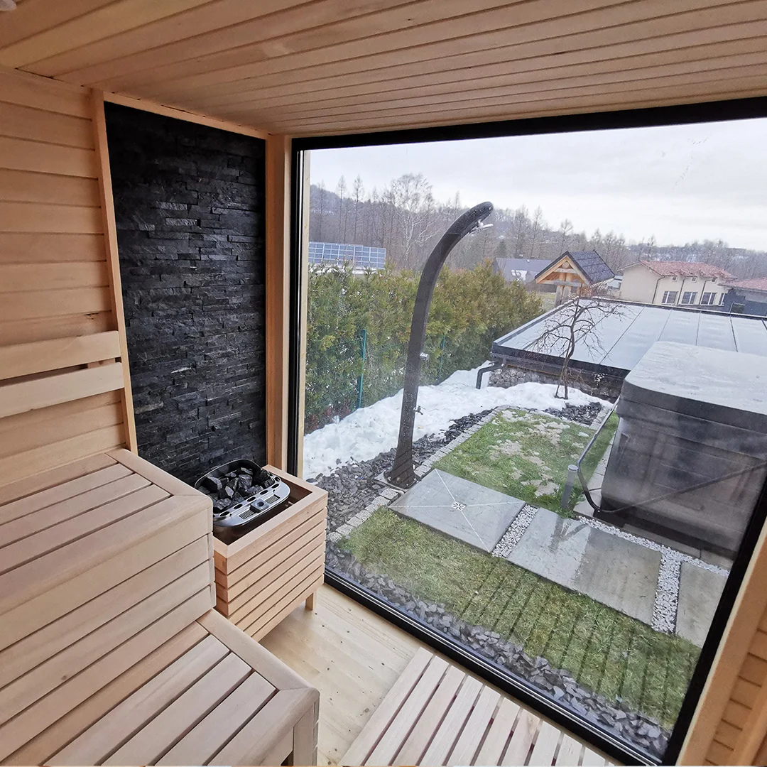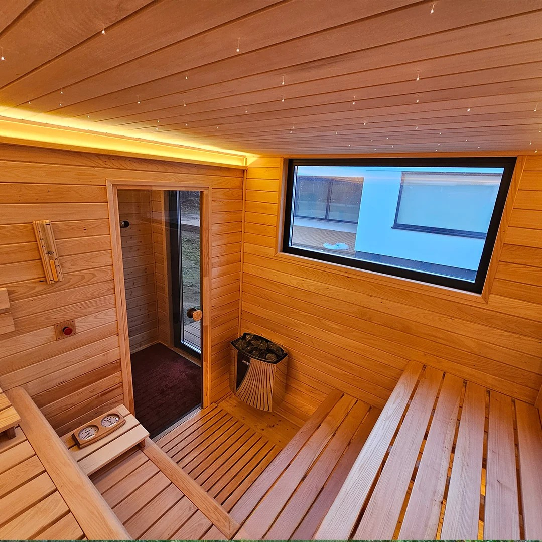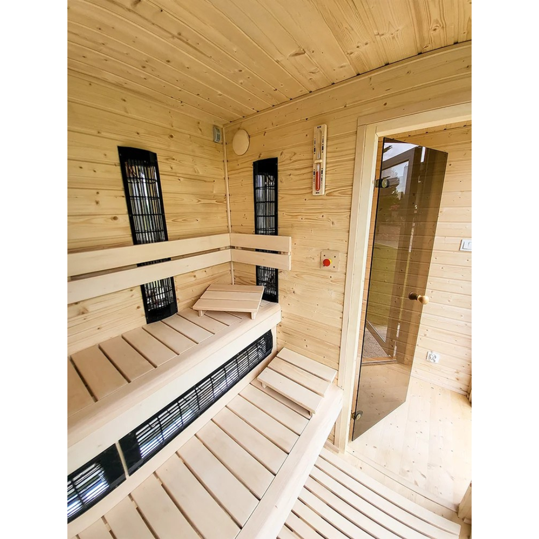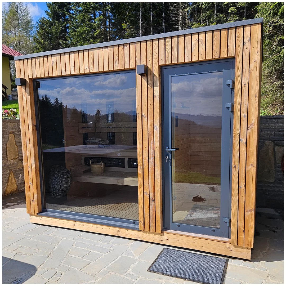 Das Angebot für das Gartenhaus TEJA umfasst eine vollständig ausgestattete und gedämmte Gartensauna.